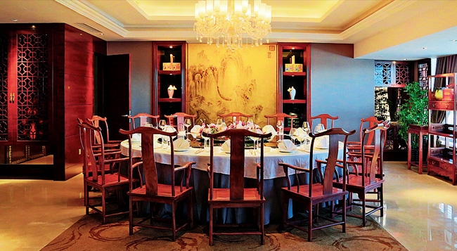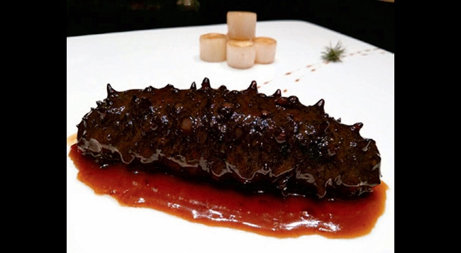 多款超值养生海味套餐,主打以科学烹调方式制作的海参菜式,并配以传统潮粤菜、经典湘鲁菜以及东北特色佳肴。 鲍鱼、海参为主角,凉菜、主菜与主食店家亦贴心的给了多样的选择,菜式基本上涵盖了中国的川鲁粤淮阳的经典。 一盅料底十足、汤体轻盈的螺头花胶汤,在口中余留丝丝螺肉的甜意。 既然以海参为主打,则一定要试一下。自古陆有人参,水有海参,这道秘制葱烧辽参选用的是十年野生干参,色泽饱满,黑中透红,简单的摆盘亦突出了海参的主角地位。 海参自身无味,所以酱汁的功力便是关键,经厨师的秘制酱汁精心调配,一口下去,软糯香滑,滋味鲜醇。主菜香草焗小牛排出品也颇费心思,将整条剔骨牛排与骨一同盛盘,颇有些取之本、食之味的寓意。姜公焗多宝鱼、浏阳山寿笋,统统的包含在套餐中。 店内特质的手撕风干牛肉,瘦而不柴,干而不硬,越嚼越香,无论当前菜,或是饭后小点,都是不错的小食之物。