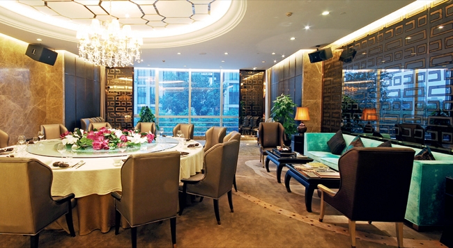 嘉美轩餐厅整体设计大气华美、时尚堂皇,随处可见潮汕书法名家的珍贵字画、以及富有岭南特色的瓷器,细节之处都彰显 出潮汕主题文化,通联各个包房的走廊墙壁上还有以粉彩描绘 的花饰,这样的环境很适合商务宴请。