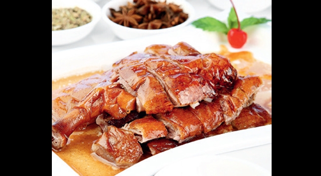 餐厅的招牌菜吊烧黑棕鹅和脆皮烤乳猪,这两道典型的粤菜最能体现师傅的功力。烧鹅皮薄而嫩,略脆的口感还带有一点韧度,鹅肉的汁水非常多,让肉质有了胶糯感;乳猪由师傅在堂上剪件,猪肉焦脆的皮层在剪刀下喀嚓作响,刚听声音就让人抑制不住食欲。国锦轩坚持不鲜不用的原则,在甄选各式时令海产时,辅以上佳自制配料、上汤、酱汁或酱油,凸显海鲜内敛而别具一格的风味,而且在烹调过程中,绝不使用味精。除了这些惊艳的大菜,餐前的几款免费小食的味道也出乎意料地好,烹小鲜见功力,能将简单的豆子萝卜和青菜料理得滋滋入味,其他的菜式也必然也分毫不差。