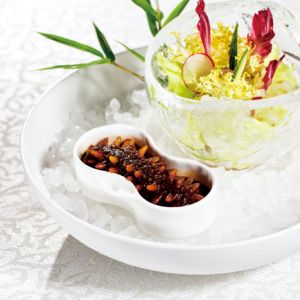 江南小菜如茉莉熏鱼、清炒虾仁都是点单率最高的。本帮菜系中的红烧肉,肥而不腻,浓油赤酱的亲切口感也颇受欢迎。传说中的老北京果木烤鸭也是留住客人的经典味道,当穿着白大褂的烤鸭师傅从炉子里挑出烤鸭时,整个餐厅都飘散着一股果木香,这也是餐厅最诱人的时刻。主厨特别创新的糟香酱桂鱼包含了分子料理的精髓——低温处理,再加上江南老糟泥的巧妙使用,让这个多道程序烹制出的桂鱼完全不同于平日的口感,松紧适度,齿颊留香。除此以外,即使是简单的蔬菜,新大陆也颇花了些心思,比如五粮液炒豆 苗,豆苗够嫩,五粮液够醇。甚至还有季节性的素食菜单,比如黑松露蔬菜浓汤、南瓜意面配鼠尾草及西柚、树莓蜜桃香槟果冻、鲜虫草花拌有机黑豆苗等等。所以,新大陆骨子里还是典型的江南味道,烤鸭不过是华丽的点缀。