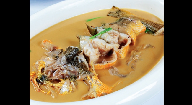 中午用餐的性价比高,港式茶点品质堪比利苑。作为台州的名牌食府老字号,江浙“小海鲜、大美味”的风格一如既往。进门处的海鲜档显眼位置一眼便看到最出名的野生大黄鱼。商务宴请需要的东星斑、澳龙、苏眉也都齐全,却不如香螺、沙蒜、鲜子鱼这类小海鲜受欢迎。可能是野生黄鱼价格较高,反倒是价格公道的野生白鲳鱼更受欢迎,家烧方式——鱼汤熬成奶白色,汤头鲜而不腥,鱼肉厚细刺少,嫩而不碎,十分入味,配上赠送的现蒸手打台州年糕。想吃还要碰运气,并非每日都有,最好预订。特别推荐水果盘,不做切块摆盘,就是当季的水果垒成一大盘,比如台州临海蜜橘,甜得醉人,超级好吃。还有实惠的港式点心,仅限午市供应,选择颇丰。