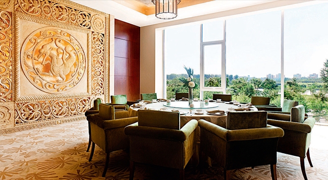 北京首都机场朗豪酒店明阁中餐厅主厨陈远隆近日新创一份当代粤式菜单,堪称明阁美食精华之缩影。典型的传统粤菜中餐厅的布局和装饰,中规中矩,也让人觉得舒服,感觉更适合家宴或者朋友聊天聚会,如果是约会那就稍欠氛围。有一道水带景观点缀,让气氛活泼了一些。