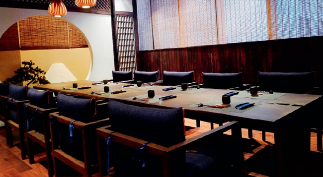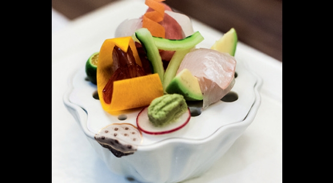 拥有40年料理经验的主厨鸣海登对于怀石料理有着独到且精湛的解读,在空蝉,不仅能够尝到他的手艺,还能看到他的墨宝,因为空蝉不设菜单,用料都取自最为新鲜的食材,即便是前菜中最常见的软煮章鱼、煎烤鸭胸肉卷芦笋的食材都是来自于空蝉每周3次从日本的空运。根据当天配给客人的菜式,主厨会亲自将其书写到宣纸上,以表重视。当然在菜单上还能看到马肉、河豚鱼、九州和牛等珍贵又难以烹饪的食材。接下来的刺身配手磨芥末、萝卜蒸甘鲷、南蛮汁河豚鱼一系列料理的艺术化的装盘与器皿的搭配,都充分体现出怀石料理崇尚“仪式感之美”的特点。空蝉除了来自于名古屋的陶器,还特别邀请艺术家赵春设计并亲自烧制的20套器皿,使得食客们在味觉、视觉、触觉上得到最大限度的满足。