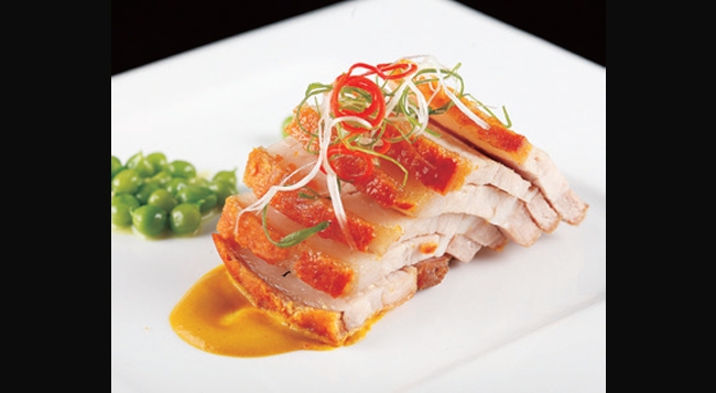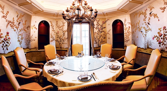 西郊宾馆的餐饮顾问由著名的孙兆国担任,并由胡于胜师傅掌勺。餐厅主要提供新加坡/台州特色菜。冷菜中的香煎野生东海带鱼和风干肉让人印象深刻,两道菜均是颇为普通的冷菜菜式。香煎野生东海带鱼用新油酥炸至金黄,外脆内嫩。风干肉是胡师傅用上等台州猪肉自己腊制的,肉质鲜美,完全没有一般风干肉类的缺点。随后的灵芝辽参炖草龟汤采用上等野生灵芝、辽参和草龟炖制。汤味鲜美、清甜而不腻,兼具清补、清毒功能,是一道不错的高贵但低调的汤水菜。热菜黑松露松茸采用黑松露菌配上野生松茸菌和深海龙烹制,黑松露和松茸菌的香味入龙的鲜肉质,龙皮的胶质亦而不,令这些难得的原材料互补,相得益彰,令人难忘。白胡椒青蟹,深海野生大梭子蟹,用香浓的老抽汁和白胡椒,令老抽汁和胡椒香味深入蟹肉中,口齿生香。午宴用一道清甜、浓而不稠的干磨黑芝麻糊完美终结。