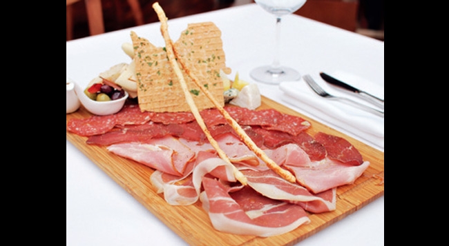 主菜碳扒150 天澳洲谷饲牛柳不但主角耀眼,竟然还搭配了配角——一根煎好的猪肉茴香肠,让观感更加爱丰富的同时,也让味感更加满足。牛肉多汁且够软够韧,猪肉肠弹性十足,肉质更加细腻。熏肉拼盘采用平铺式的出品方式,实在足够震撼,这道最能体现欧陆风情菜式的主菜料多到让人尖叫:意大利火腿、色拉米、风干牛肉、烟熏火腿、混合芝士、腌橄榄搭配自制香料面包和果酱……朋友分享都足够,当然,相信更多人希望可以独自霸占。餐厅还有专为素食主义者准备的一道前菜,番茄洋葱芝士塔配黑橄榄、芦笋和橄榄油浸朝鲜蓟,丰富的食材搭配和秘制调味汁让这道菜也成为非素食者的最爱。