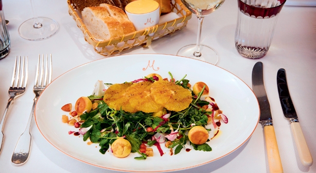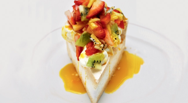 • 米氏蛋白饼是比米氏餐厅更有名气的代表甜品,品类丰富的时令水果块儿五颜六色地堆积在一大块铺了糖浆的蛋白饼上,厚实有质感,又因为鲜嫩的配色让它看起来娇嫩欲滴。周日的下午茶有这道甜点的供应,还比晚餐时点叫要便宜一些,值得你专程来尝。
