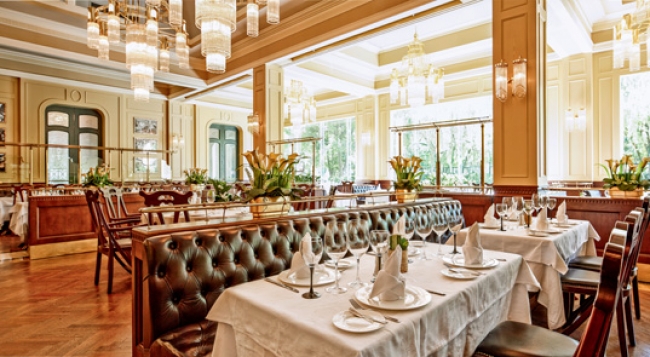 这间餐厅在北京已有16 年历史,巴黎福楼集团的背景保证了出品正宗,食物以外的每个细节也都浸透着浓郁的法兰西风情,木质地板、墙壁上描绘着19 世纪20 年代初巴黎景致的壁画,主菜之后清理桌上残渣的专业服务,举手投足间都是老派贵族风范。福楼餐厅是北京第一家 Brasserie 概念餐厅,餐厅设计是传统的“Terminus Nord”真实再现。