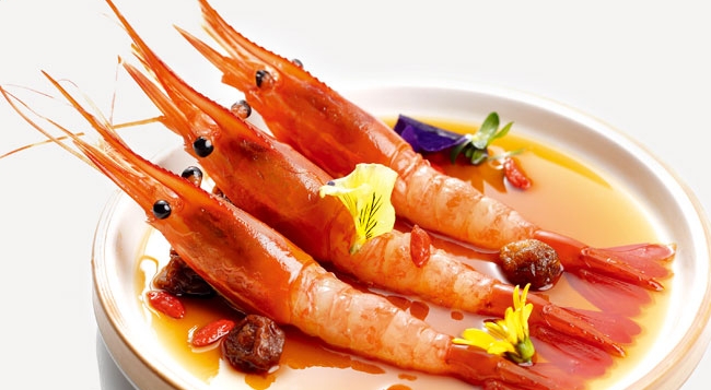 •前菜中的话梅醉牡丹甜虾是招牌菜,话梅选得好,不过酸,又用恰到好处的果酸带出甜虾的醉甜,是本帮菜优雅化的成功作品。
