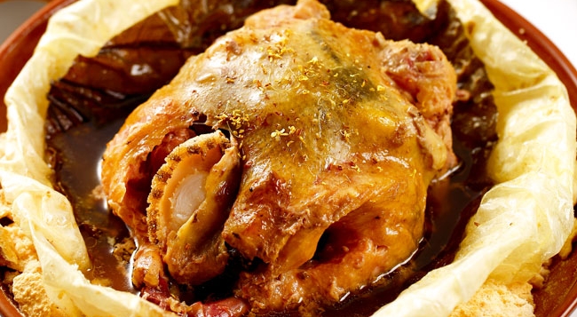 •海派桂花火焰鸡是夺人眼球的一道菜,火焰不仅好看,也能起到提味的作用,酒精燃尽之时,鸡味被烧得微焦的外皮包裹,内里汁水丰富,此时入口最为肉嫩且鲜。