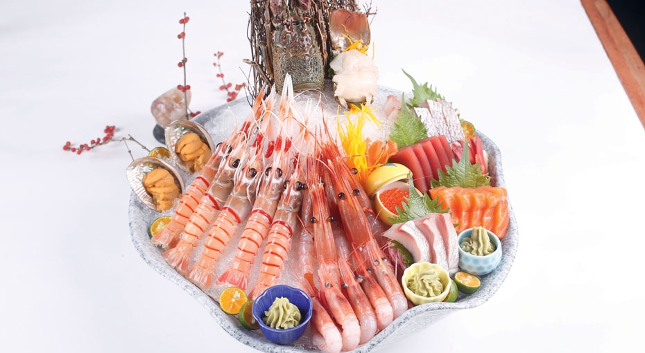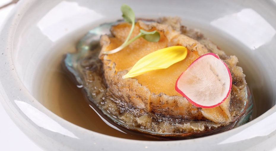 刺身拼盘作为头牌,包括来自新西兰的螯虾、加拿大牡丹虾、俄罗斯甜虾、莫桑比克小青龙、小龙虾、日本寒狮鱼、印度洋金枪鱼、挪威三文鱼……来自世界各地的深海美味,让人胃口大开!日式煮软鲍,将六头大连鲍,用柴鱼汤,加入味淋和清酒,煮到八成熟,然后开始用原汁原味的大连鲍高汤浸泡整整两天,让柴鱼的鲜味深入鲍鱼内部,这样美味的高汤深入鲍鱼内又能激发出鲍鱼的鲜美。松茸土瓶蒸,选用来自云南的松茸和柴鱼高汤,浸泡一天以上,目的是让松茸味道浓重;之后加入银杏、海鲜壳等配料,上蒸箱蒸,来自山野的松茸香气遇到深海的咸香味道,层次鲜明,醇厚浓郁!