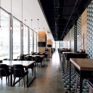 非常工业化的美式风格室内设计,直线条的干脆利落与美式烤肉的豪爽风格相得益彰。大口吃肉的痛快感觉是其他西餐厅不能比拟的,