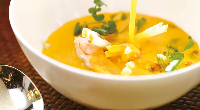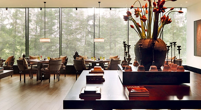 虽然地处繁华的上海静安寺,但是来到璞丽酒店却有着“ 都会桃源”一般的感受。从门廊走入,仿佛进入桃花源一般,烦躁的心开始渐渐安静下来。处处流露出设计感,在户外还有一方花园,仿佛身处东南亚园林之中。位于二楼的静安餐厅也恰到好处地延续了这种兼具设计感——当地风情与东南亚风格的融汇元素。空间阔落,设计中多用木头与深色真皮的搭配,沉稳而简洁,而像餐桌上的台灯以及设计感十足的烛台则立刻带动起了现场的活力。坐下发现餐桌并不是老态龙钟的厚重实木,而是竹藤编包。还未开餐,心情已经愉悦。