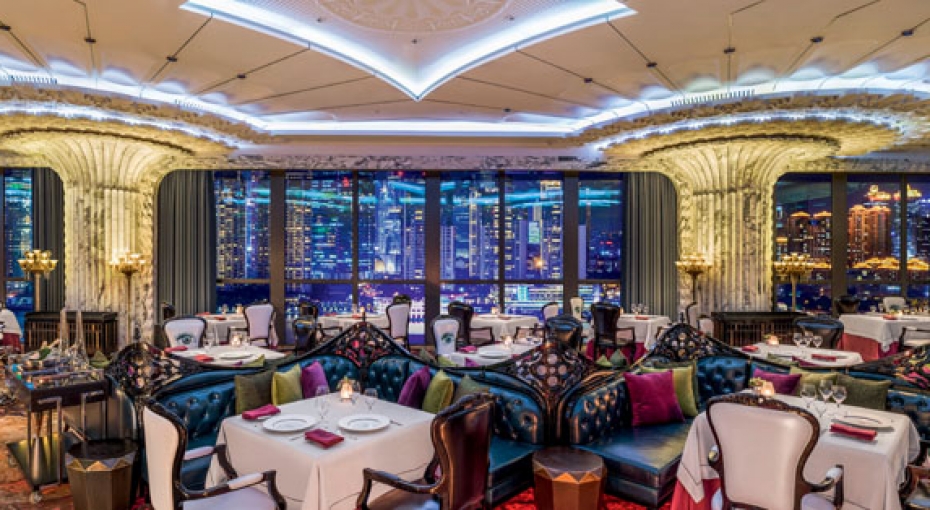 坐落于万达瑞华酒店顶层,硕大的落地玻璃窗和超大露台坐拥绝佳的浦江及外滩美景。Art Deco设计透露精致而奢华的气息。