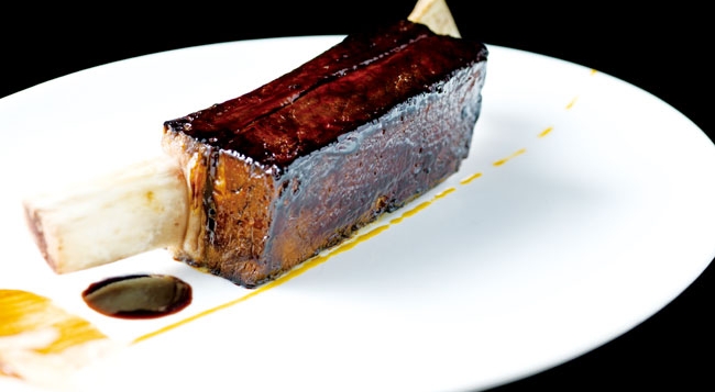 •主菜首选“主厨独创”系列。袋蒸黑鳕鱼出品形式有新意,食材装在透明塑料袋中,服务生在客人面前装盘表演,汁水悉数淋入摆盘中。主厨独创酱烧牛长小肋排份量十足,口感嫩滑松软,酱汁入味,咸香中带微甜。