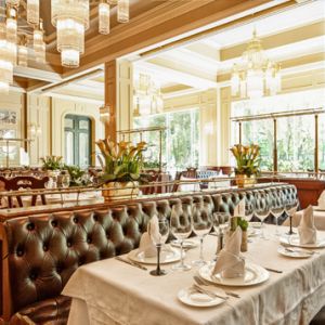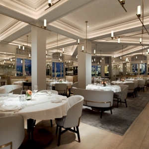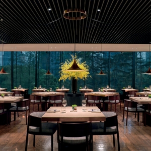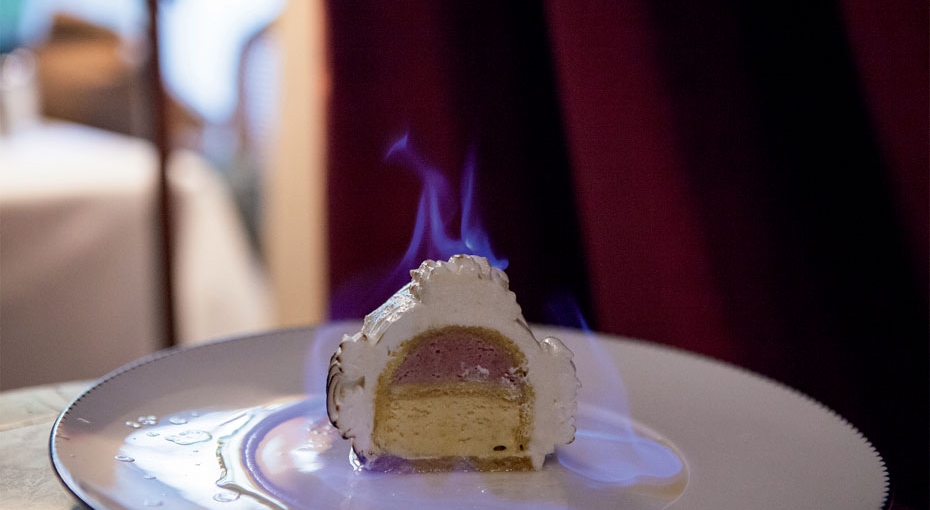 前菜中自制果木烟熏三文鱼很出色,一整条烟熏过的三文鱼被推到客人眼前,当场切片摆盘,很有仪式感。低温慢煮牛小排配传统黑胡椒汁、法式秘方香料羊排都是不错选择。酸甜味主打的法式柠檬塔及迷迭香冰霜是甜品中的第一主角。