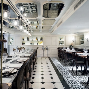 餐厅的小黑板上写有餐厅推荐菜和当季新菜,招牌的威灵顿牛肉几乎每桌必点,酥松的酥皮内包着多汁可口的牛肉,再加上优质鹅肝。鹅肝类菜式也是主推,如四天制成的法式乡村酥皮鹅肝小牛肉酱批、传统煎鹅肝搭配糖渍苹果、橙香红酒热渍鹅肝酱。