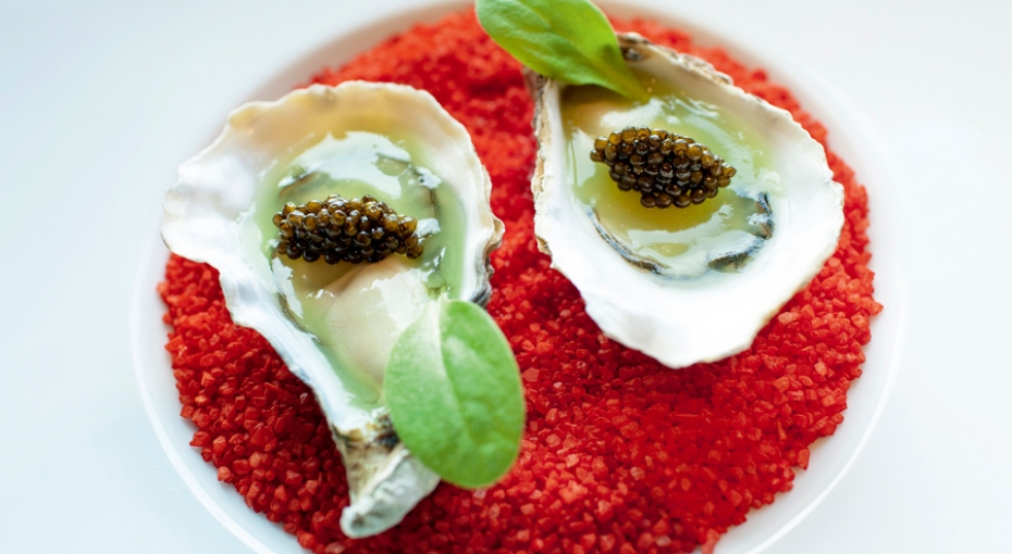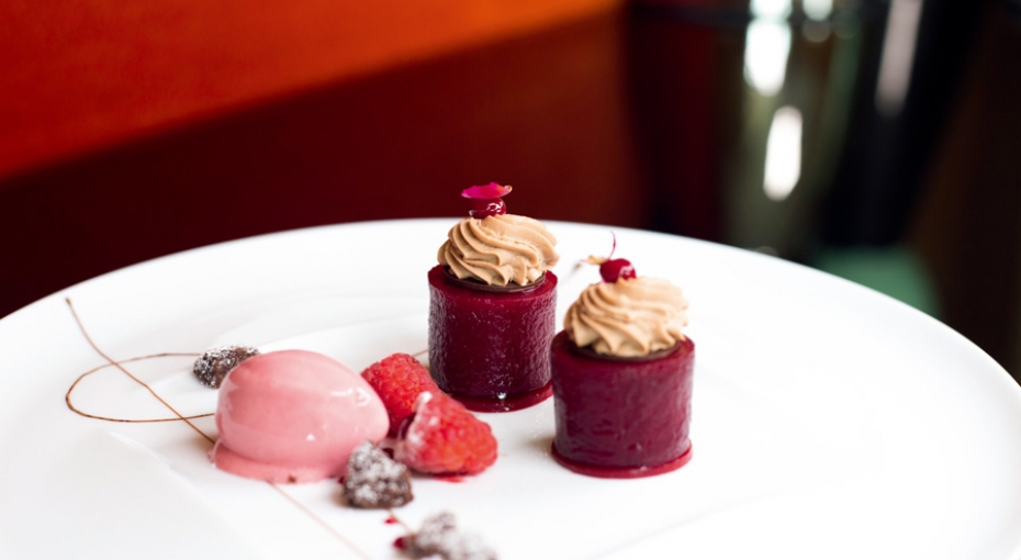 景观无可挑剔,用餐区域以红黑两色为主基调,装修设计沉稳典雅,富有气场,桌与桌空间开阔,颇具私密感。菜单不算大,主厨推荐Tasting Menu(名为冒险者)囊括餐厅经典与当季推荐菜品,还有配酒版本。还有一页菜单是鱼子酱与生蚝,彰显奢华。主厨很懂得运用传统法餐基础酱汁味型加入多种当季滋味与本土食材形成变化多端的滋味,如牛蛙腿中的薄荷啫喱、红菜头啫喱与黑蒜奶油酱汁、扇贝中洛神花啫喱、洛神花酱汁搭配八角、桂皮与墨鱼汁脆片,以及主菜牛肉中以牛肉汁、中式酱油和山葵调配酱汁。面包极富心思,3 款面包分别在前菜、鱼菜和主菜间隙呈上,滋味渐重,体现当季的滋味。