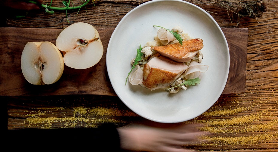 餐厅会自制半干水果干、蔬菜干,运用在菜品来增加层次变化,健康安全。甜品出色,用香脆糯米搭配芒果冰沙,用荞麦冰淇淋搭配野生花蜜和玫瑰花粉。蔬菜源自有机农场和露台花园,禽肉海鲜可追溯产地,还有自制酸奶油和酸奶。酒单精选不少有机和生物动力法酿制的葡萄酒,还提供多种蔬果汁和果昔,健康又美味