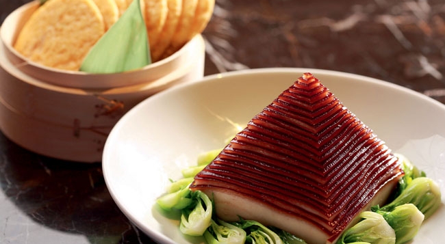 • 老北京果木烤鸭 :烤鸭自然不用说,厨师细致的刀工把切片的 鸭子分盘呈上。配上烤鸭酱,葱白和黄瓜,卷在饼中,一口下去, 满嘴留香。脆脆的鸭皮烤得恰到好处,香脆可口。