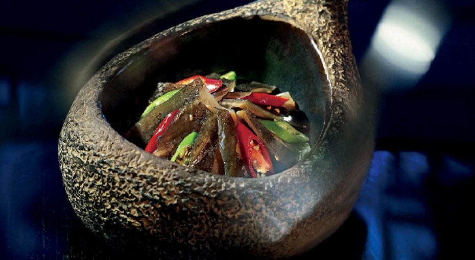 黄志玲主厨推出的WOW菜单不仅在食材和健康搭配上颇下了一番功夫,更注重与食客情感上的交流。其中一道菜品以“我爱你”命名——低温慢煮三文鱼搭配鲟龙鱼的鱼籽,再配以柠檬汁和红心火龙果制成的汁沫,柠檬汁可以很好地压制鱼籽和鱼的腥味,而红心火龙果则采用独家秘制的处理方式,过滤掉内籽,只留下果汁可以完美地起到提鲜的作用,心形的造型充盈着浪漫。“童年的回忆”将墨鱼炒饭做成蜂窝煤的样子,放在迷你版炉子的器皿上,让人一看到就想起小时候的日子,鲜美的墨鱼汁更是让人齿颊留香。“百鸟归巢”的造型充满浓浓京味儿,配以传统广式名点叉烧酥,形成完美的南北融合。