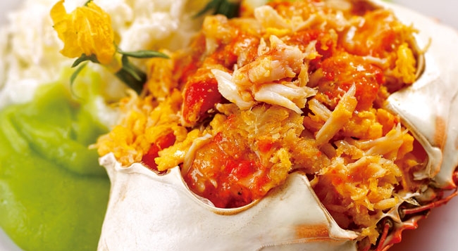 •翡翠芙蓉蟹粉盖是每年蟹季必点的一道佳肴,清炒后的蟹粉清甜香浓柔腻,蛋白滑溜如绢轻盈,呈现出半凝固半流动的状态。