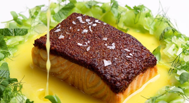 •温热海鲜沙拉配牛油果、柠檬和荷兰芹有着清新活泼的海洋气息,满满的青口、大虾和鱿鱼在牛油果和荷兰芹的衬托下鲜味尽现。