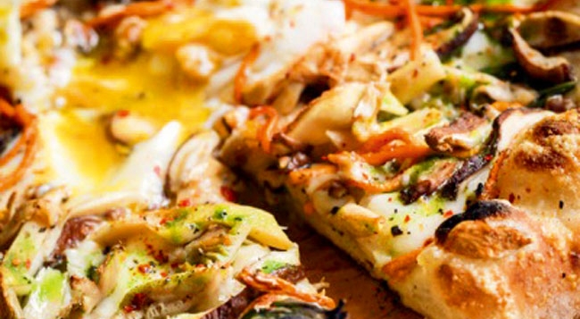 餐厅最为特别的披萨角的灵感源于意大利木材烤炉内的星光闪烁,它出品的披萨是Mercato 的招牌之一,这款披萨由特殊的生面团和最顶级的意大利粗粒小麦粉自制而成,再在火炭的烧木烤炉中烘烤,正如Jean-Georges 所宣称轻薄如空气