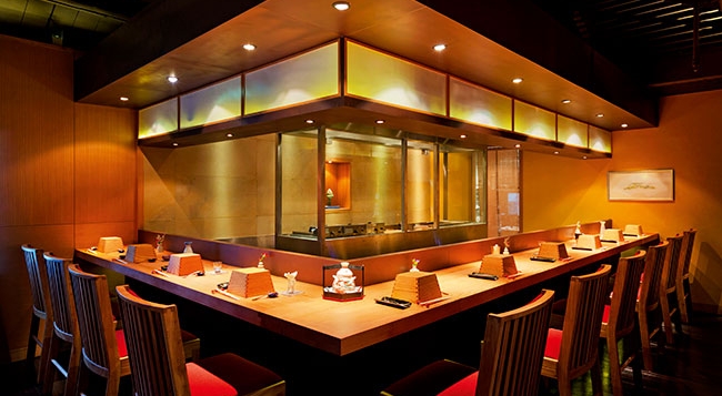 延续原味烹调的精神,按照一定的顺序上菜,注重山珍和海味的排列,每道菜的出场都有它的必然,从淡到浓,从煮到炸。且都是在客人点餐后,才开始现制作的,以保证料理的新鲜度和口感。人参玉子香炸鳝鱼,鳝鱼酥脆,造型生动,玉子蒸碗淡香细腻,头盘就让人领略到怀石对于器皿的要求,装扮的点缀有时候会让人忘却哪些可食用,哪些只供欣赏。接下来的鱼生一定是料理的必须,吞拿鱼肥厚,鲷鱼鲜嫩,牡丹虾甘甜肥硕,余味悠长,三文爽滑醇厚,而包裹刺身的白萝卜皮是师傅亲手用刀削的, 细腻的纹路在灯光下隐隐可见。每道菜的间隙都拿捏得十分好,不时小酌几下清酒,也不觉明白“吟酿”级别的高级,像吟诗一样去品尝,逐步体会再几番咀嚼回味。炭烤的五花肉卷有3 种不同的口味,由轻到重,由淡到浓,分量虽少,但浅尝即好,毕竟料理的精髓不在于份量而是在于一场精致的体验,特别安排了清口菜以至于口腔的烤味不会影响之后对于天妇罗的品尝,海胆柚子冷面采用当季新鲜水果特质而成的啫喱状柚子酱,新鲜海胆肥美饱满。天妇罗同样有三种,对于酱汁的搭配也会有专人帮忙解说,什么时候该吃原味,什么时候该点酱汁。主菜一般会二选一,建议如果有同行的人一起,不如各点一份,澳洲和牛寿喜锅,食材上当然是无可挑剔,而另一份黑松露金线鱼石板烧,黑松露是现场刨片洒在餐点上的,还能闻到空气中黑松露的芬芳。甜品也是充满了和式风味的水果布丁,清淡爽口,不会对它特别的上心,但是少了它的存在又似乎有些不完整。