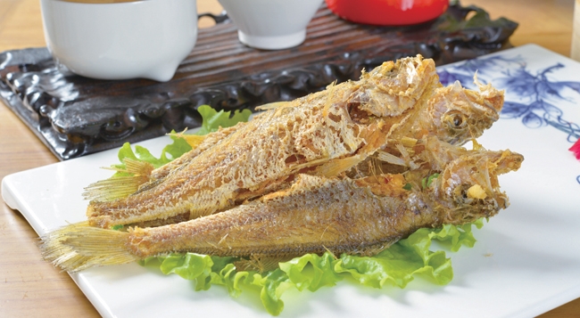 • 致真酒家的特色菜肴很多,比如由“两头乌”制作的红烧肉是 来客必点的招牌菜。五花肉肥瘦得当,成菜卤汁紧包,油光锃亮, 香气扑鼻,皮质软韧,肥肉部分油而不腻,入口即化,瘦肉部分纤维适度,不柴不硬,食后令人回味悠长。元宝煎红虾壳脆肉嫩, 脱壳容易,肉头紧实,富有弹性,鲜香十足,回味鲜甜。