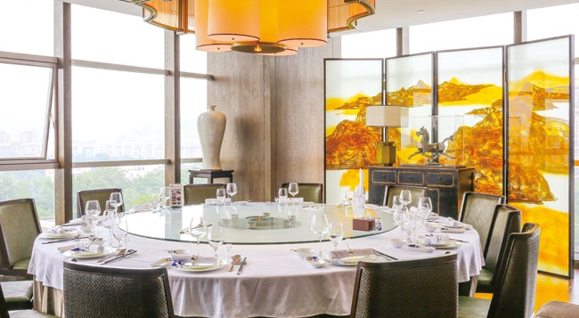 同庆楼金宝汇店总面积近 3,000 平米,殊为难得的是有如此体量却无处不雅致精巧,犹如致意徽派园林。走进餐厅,黯柔舒缓的光线照映着璞玉色的大理石地面。